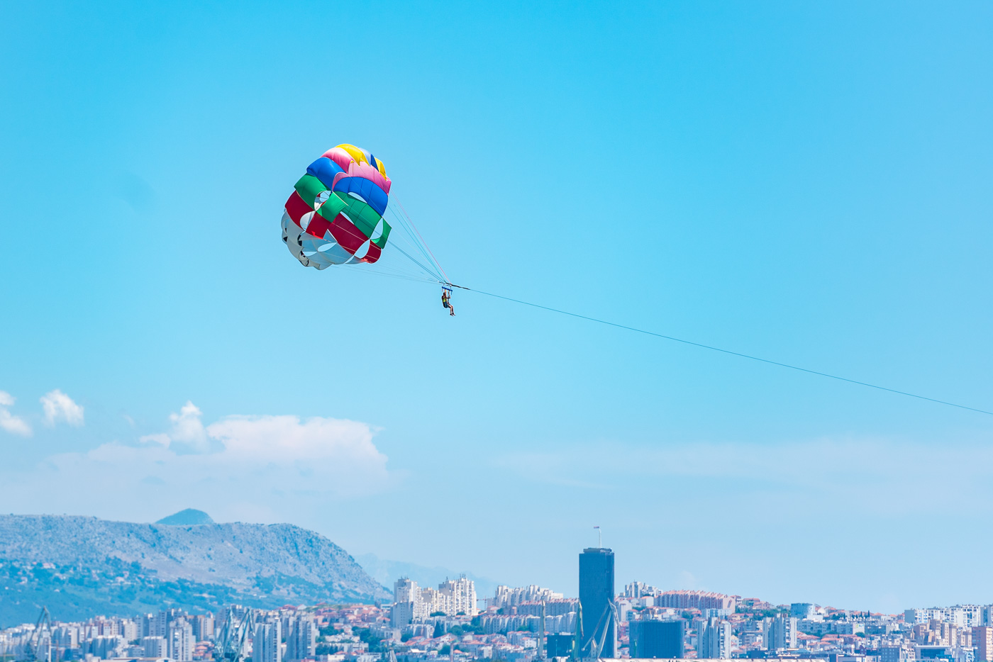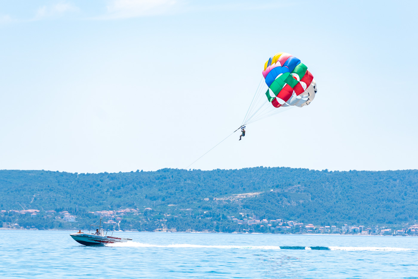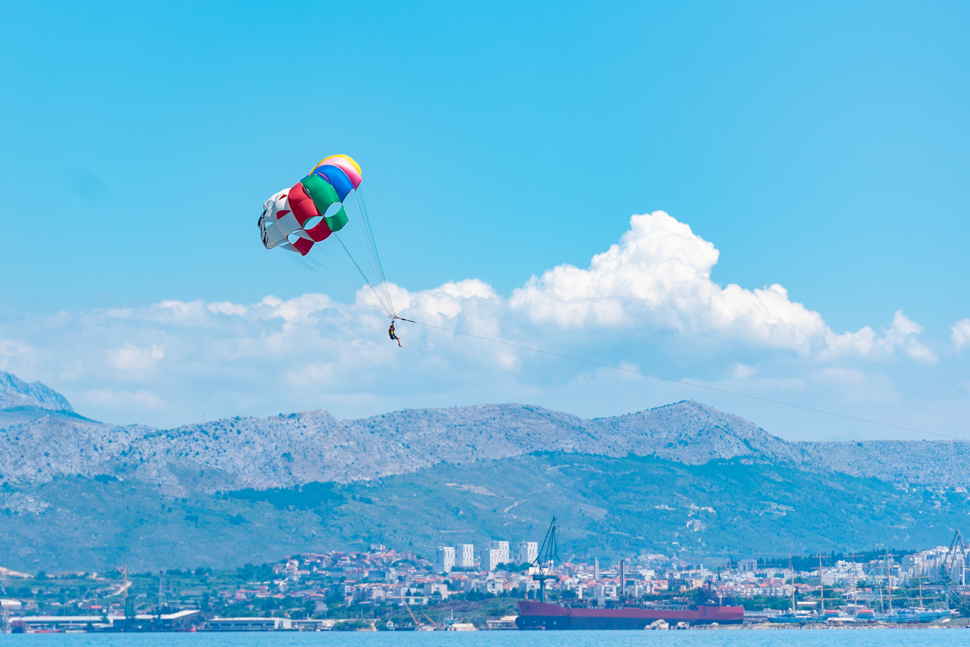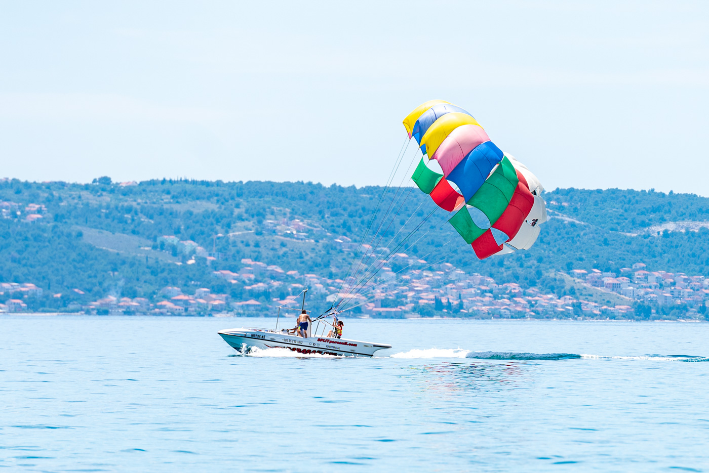 Parasailing is one of the most popular activities! Feel free like a bird and enjoy the wonderful view on Kastela and Split. Share this with your company, up to 4 persons per fly. Enjoy beautiful view over the Adriatic Sea and Kastela Riviera with our special big mini parachute. (240kg maximum)